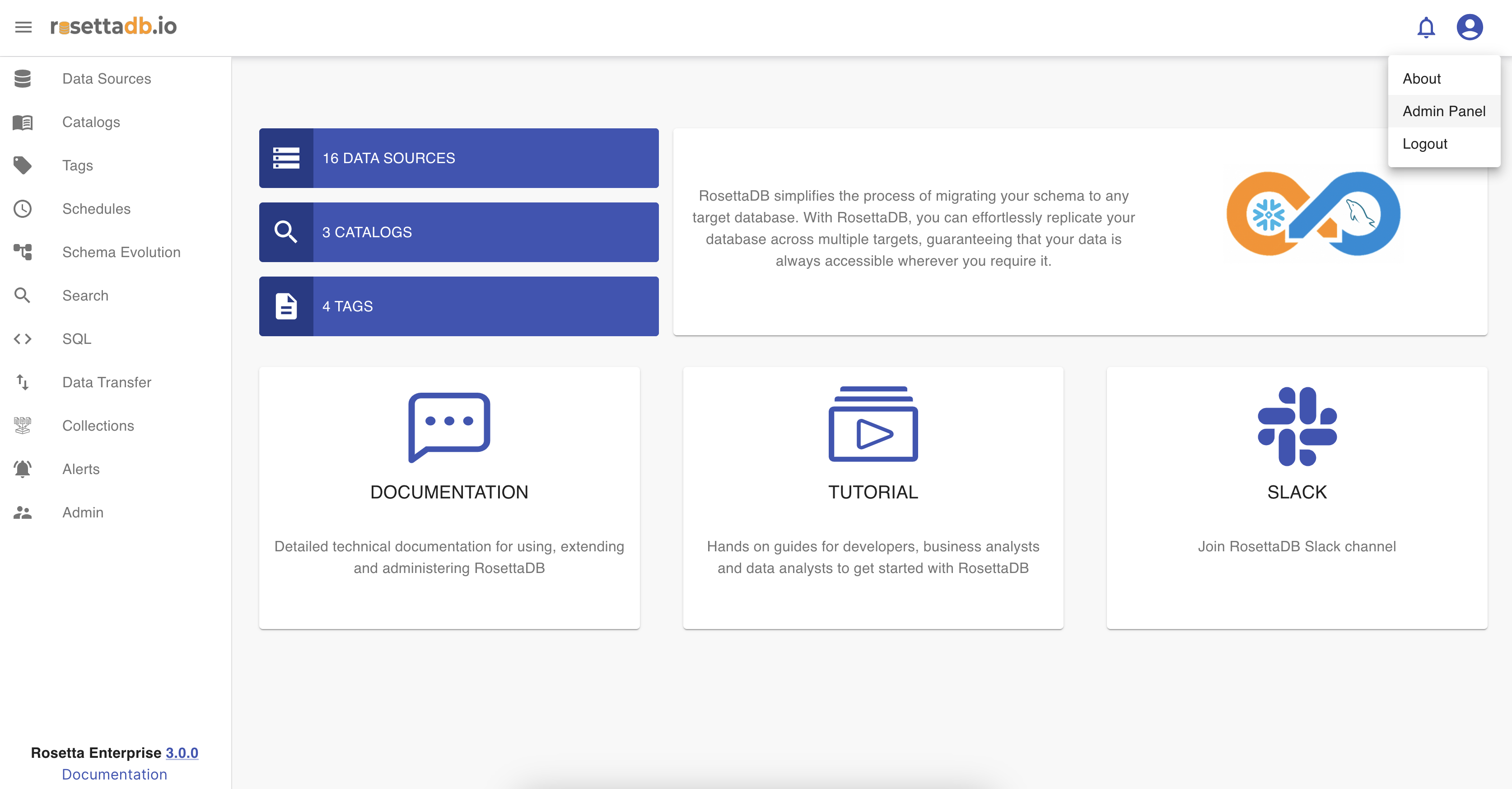 Admin Panel is a feature that allows users to back up and restore the project settings, and also it is possible to create a git configuration so the changes made can be deployed there. On the right corner at the top there is an icon, when clicked it shows the Admin Panel.
