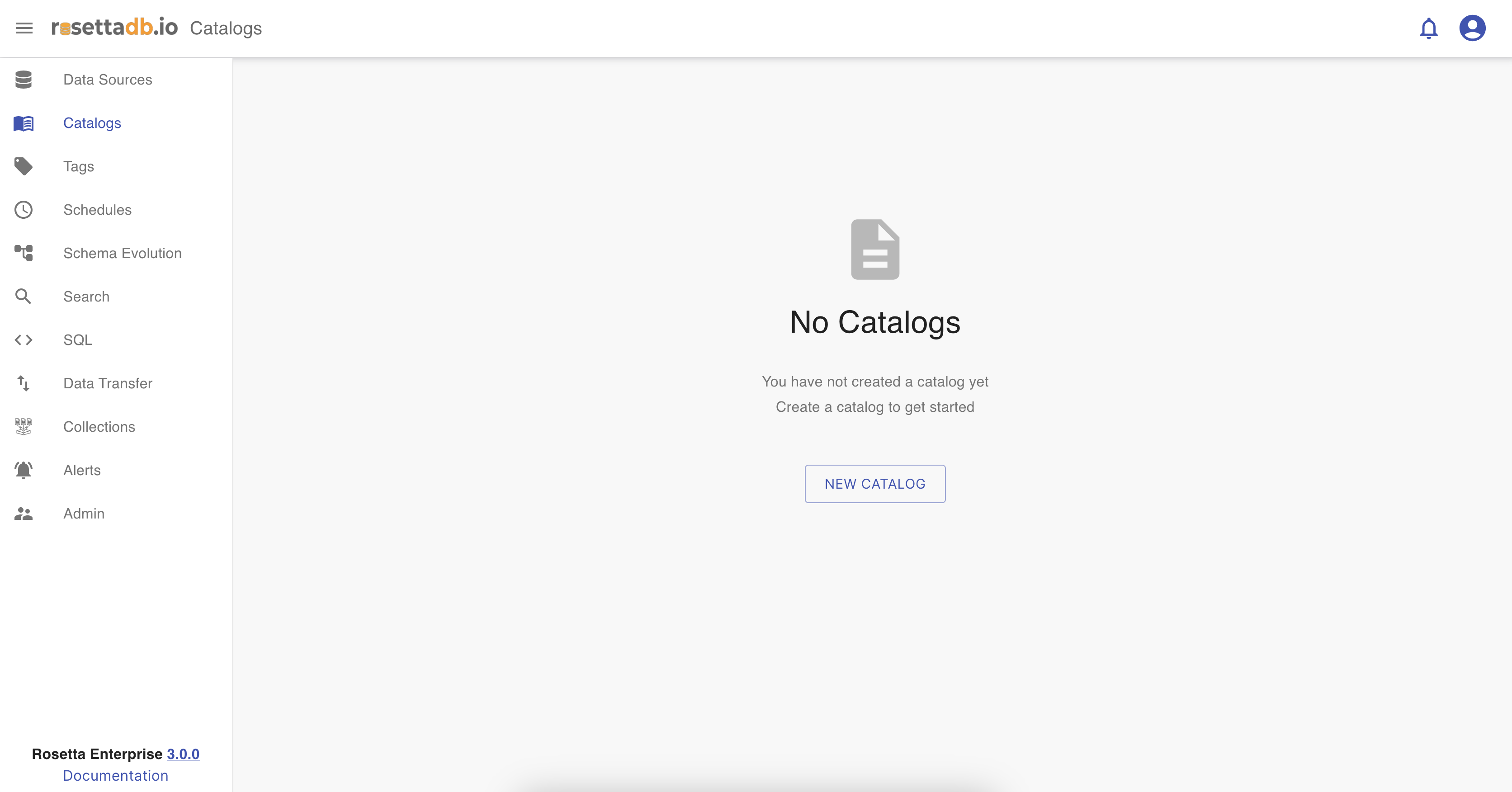 If there are no catalogs configured, the user can click on New Catalog button to add a new catalog.