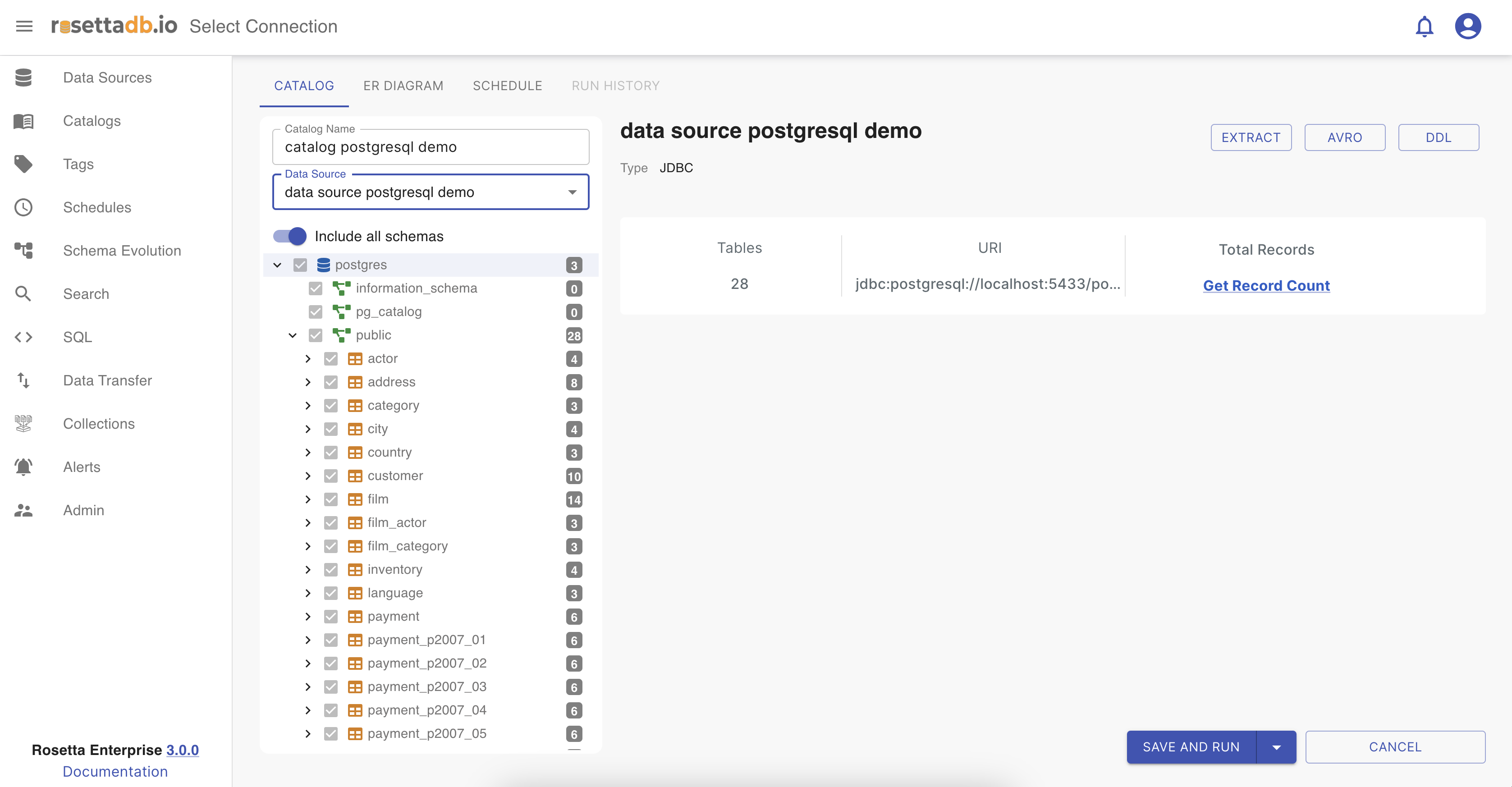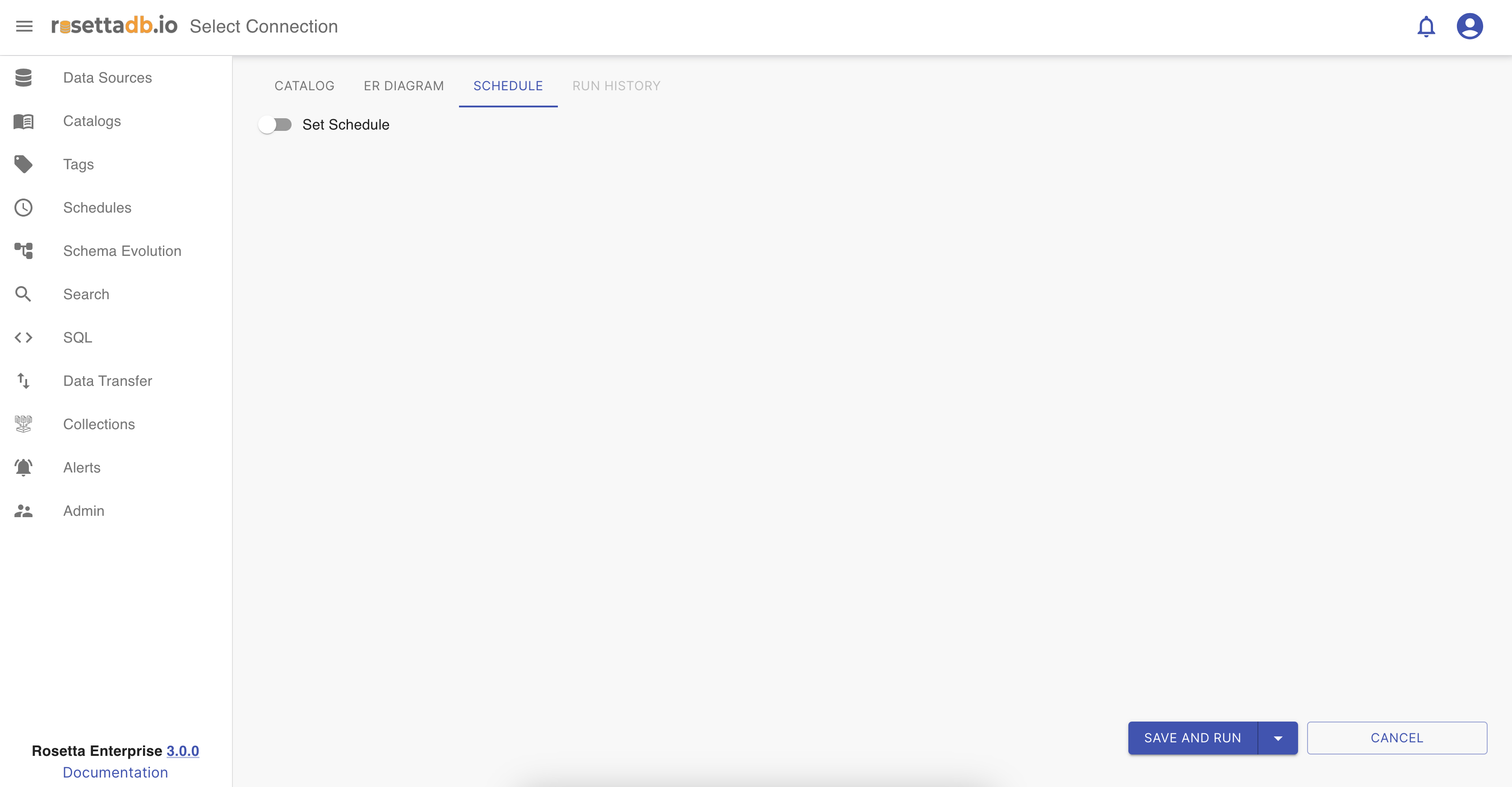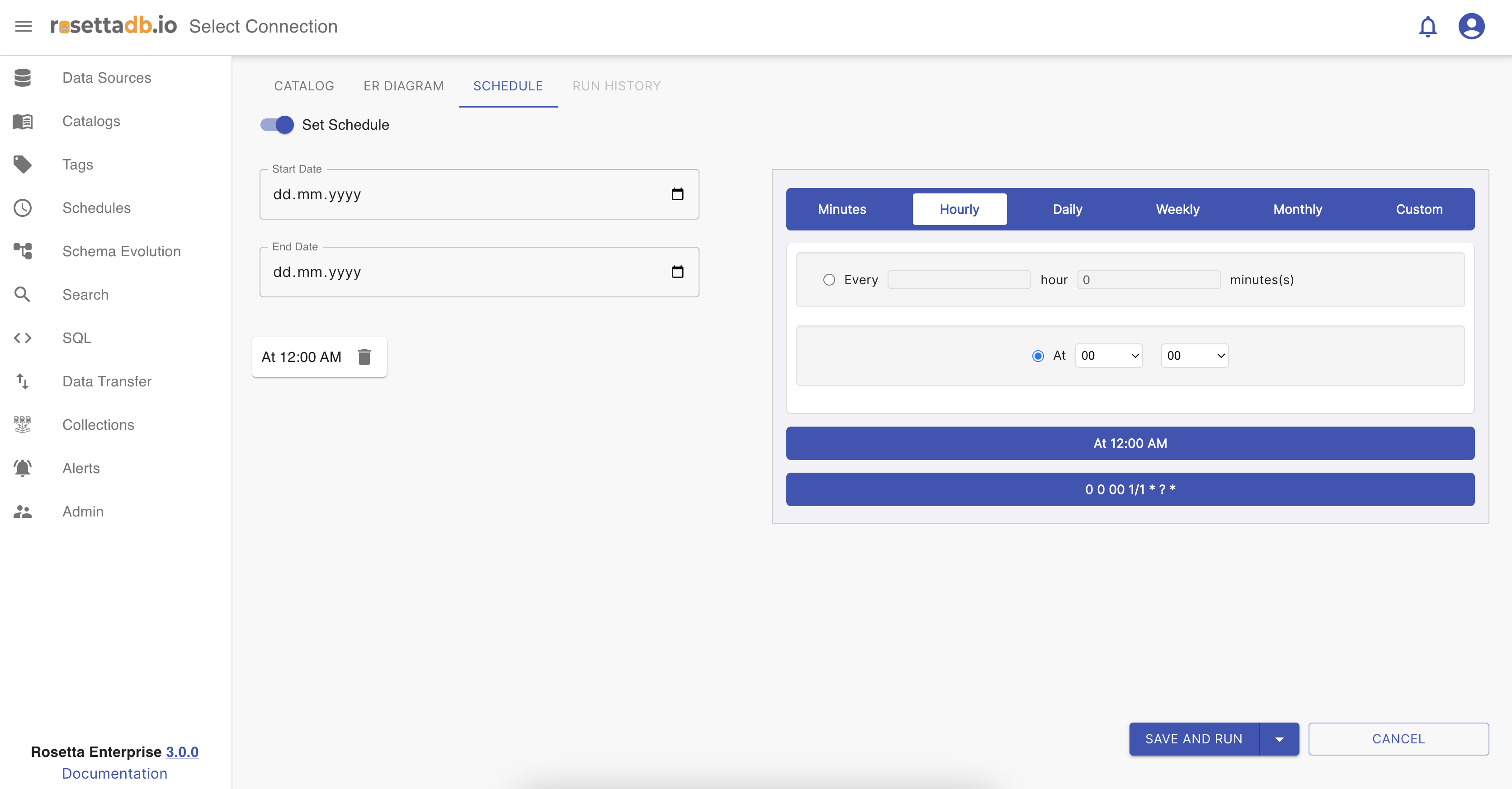 Now that the user has finished setting a catalog it can choose whether it wants to set a schedule on the next tab or just Save and Run the catalog.