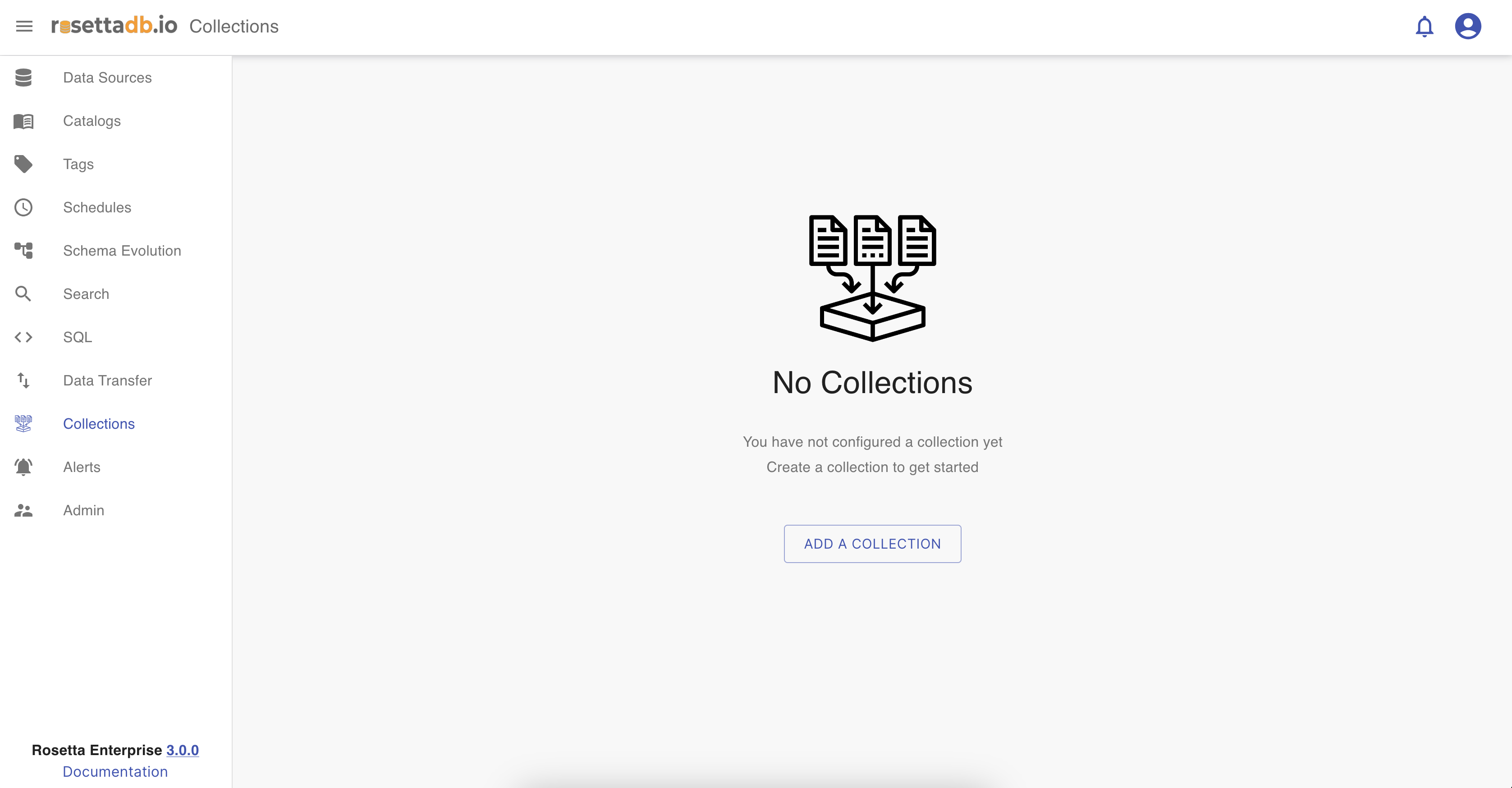 If there are no collections configured, the user can click on Add Collection button to add a new collection.